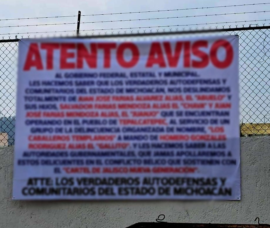 Dichos mensajes estaban firmados por “los verdaderos autodefensas y comunitarios del estado de Michoacán”, en ellos se mencionan varios nombres de habitantes de Tepalcatepec, así como de un objetivo delincuencial que tiene operatividad en la Tierra Caliente, además se hace mención de que sostienen en conjunto una disputa con otro cartel oriundo de Jalisco.