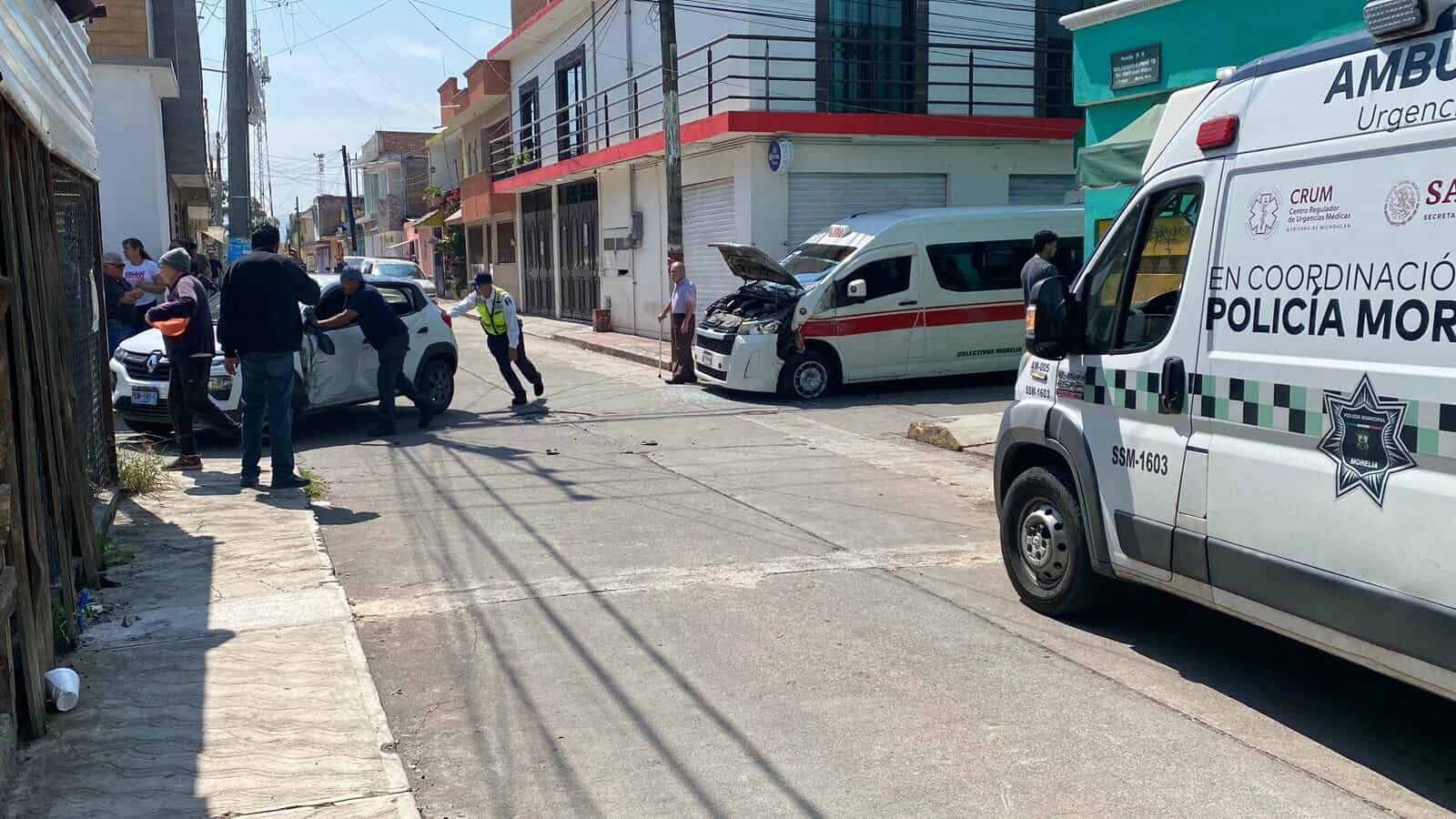 Tres vehículos, entre ellos una combi de la Ruta Roja, protagonizaron un choque en la colonia Adolfo López Mateos, ubicada al poniente de Morelia. De acuerdo con fuentes policiales, el incidente dejó cinco personas lastimadas, afortunadamente no de gravedad.