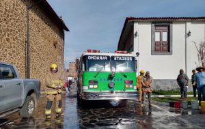 Paracho, Mich.- Un conato de incendio se registró la tarde de este sábado, en la iglesia de Santiago Apóstol, de esta comunidad de Nurío, el cual fue controlado y sofocado por habitantes del lugar y del Cuerpo de Rescate de Paracho.