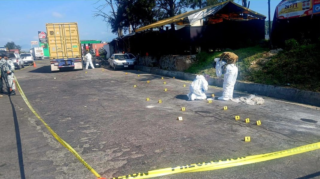 Los disparos fueron alertados a número de emergencias, luego acudieron patrulleros locales y elementos de la Guardia Nacional (GN), quienes con apoyo de paramédicos confirmaron los decesos de los afectados, uno de ellos, la fémina yacía dentro de un automotor Nissan Tsuru, color blanco, con placa PAZ828B. Otros dos cuerpos estaban tirados al exterior de un tráiler y el restante en un comercio de comida.