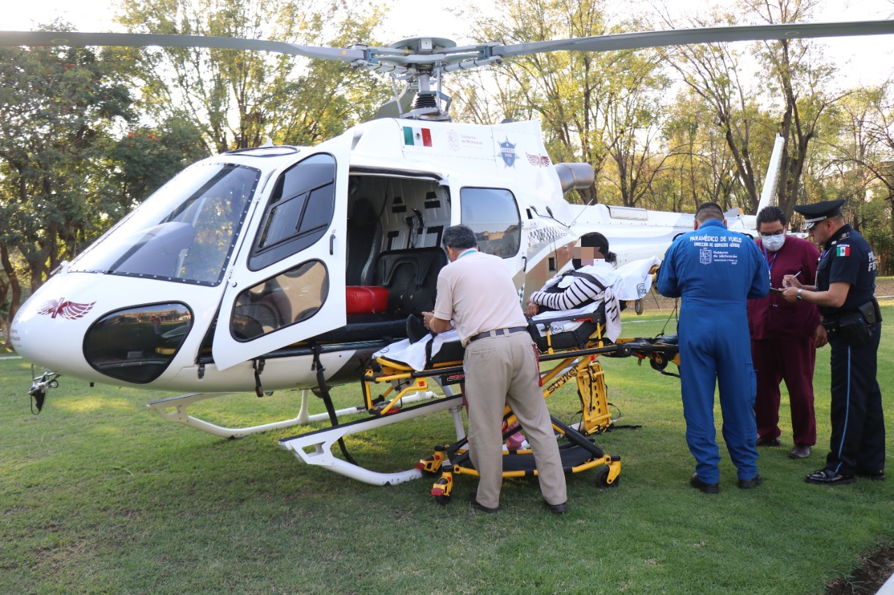 Fue en la ciudad de Morelia, donde se encontraba una mujer de 37 años de edad con antecedentes de diabetes mellitus tipo 2, hipertensión arterial sistémica e insuficiencia renal crónica, lo anterior, de larga evolución; por ello, solicitaron el apoyo de las aeronaves de la SSP para realizar su traslado a la ciudad de Guadalajara.