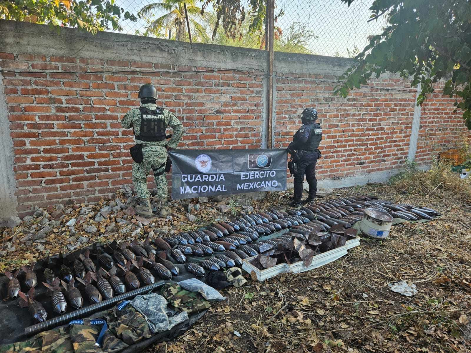 En sus recorridos, los militares y los guardias civiles detectaron un punto en el que eran almacenados los explosivos que «Los Viagras» empleaban para «dronazos» que realizaban en contra de grupos delictivos rivales, dijeron mandos castrenses.