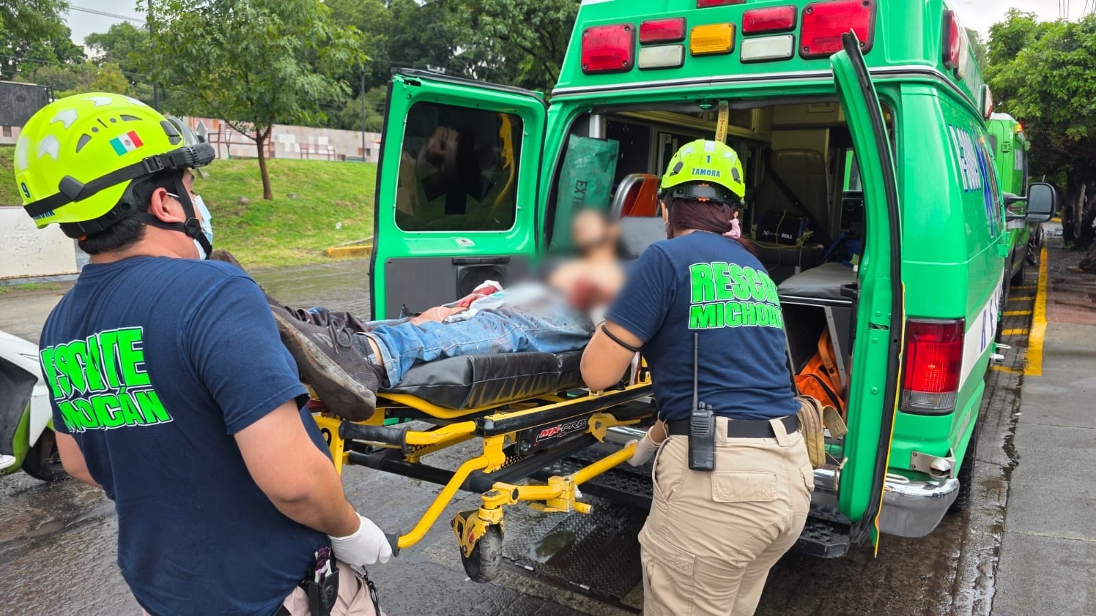 Enseguida arribaron paramédicos de Rescate para brindarle los primeros auxilios a Salvador J., G., de 41 años de edad, vecino del Fraccionamiento Valle Dorado, persona que fue canalizada de emergencia a dos hospitales particulares donde no fue recibido y finalmente ingresado en otro nosocomio.