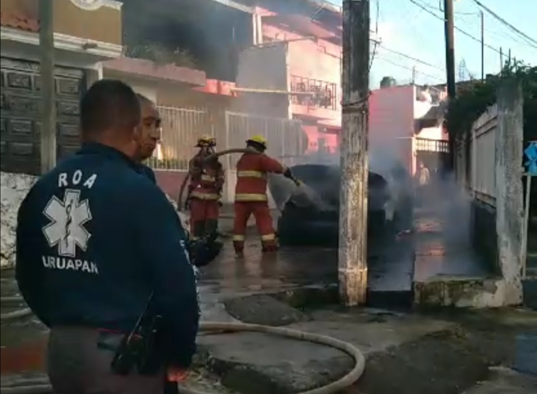 Fue la mañana de este martes, cuando habitantes del Andador Ephus reportaron al servicio de emergencias que un vehículo ardía en llamas, por lo que al sitio acudieron elementos del cuerpo Voluntario de Bomberos de Uruapan.