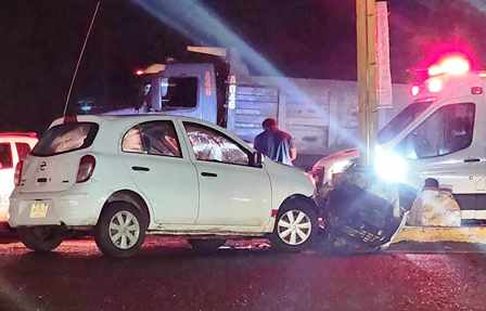 El fuerte choque se reportó la madrugada de este viernes en las inmediaciones del entronque de “Las Adelitas”, donde el chofer de un Nissan March de color blanco, al parecer se quedó dormido y terminó ´por impactar contra la base de dicho semáforo.