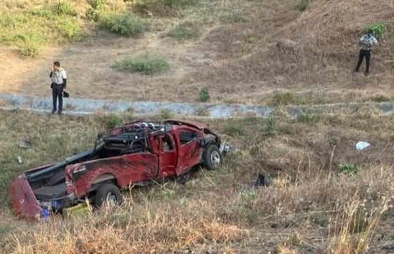 Primeramente, en el kilómetro 96+400, del tramo Uruapan-Nueva Italia, una camioneta, tipo pick-up, de color rojo, se salió de la carpeta asfáltica y se precipitó a un desnivel donde dio varias volteretas, resultando lesionado el conductor.
