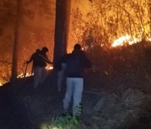 Angangueo, Michoacán.- Personal de la Secretaría de Seguridad Pública (SSP), atendió de manera oportuna un llamado de emergencia que alertaba sobre un incendio forestal en el municipio de Angangueo; tras las acciones, lograron sofocar las llamas.