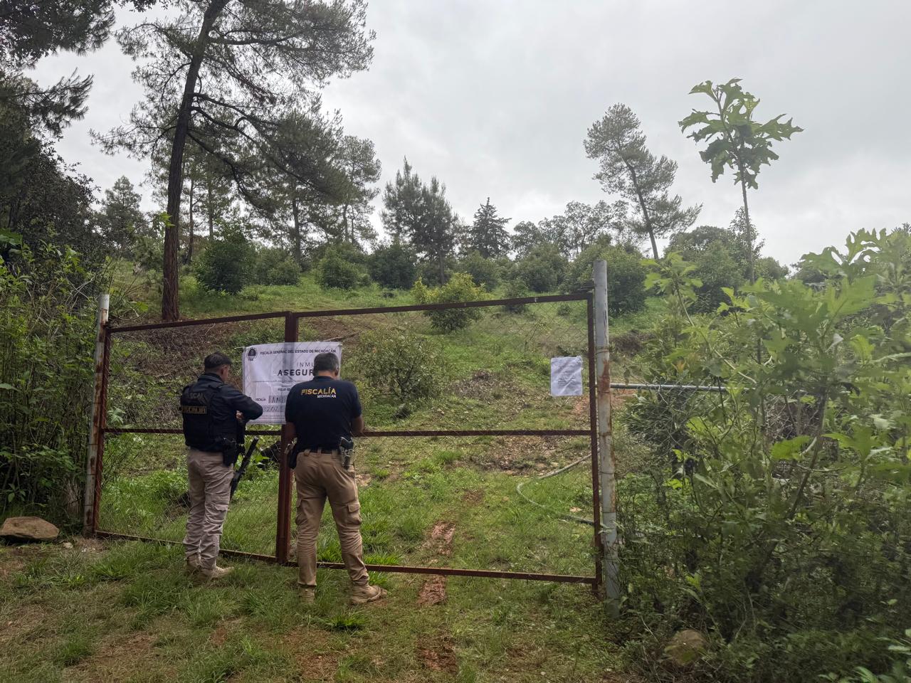 Durante la diligencia, agentes de la Policía de Investigación ingresaron legalmente al predio, donde localizaron tocones de árboles derribados, una plantación de aguacate y evidencias de modificación del terreno, sin que existiera permiso alguno de aprovechamiento forestal, saneamiento ni cambio de uso de suelo, de acuerdo con las instancias competentes.