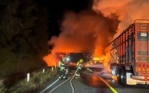 Pátzcuaro, Mich.- Delincuentes armados y elementos de la Guardia Nacional (GN) se enfrentaron a balazos en las cercanías de la población Estación de Ajuno, municipio de Pátzcuaro, hecho que no dejó bajas en ambos bandos. Posteriormente los criminales se apoderaron de tres vehículos, los atravesaron y quemaron sobre la carretera libre Pátzcuaro-Uruapan