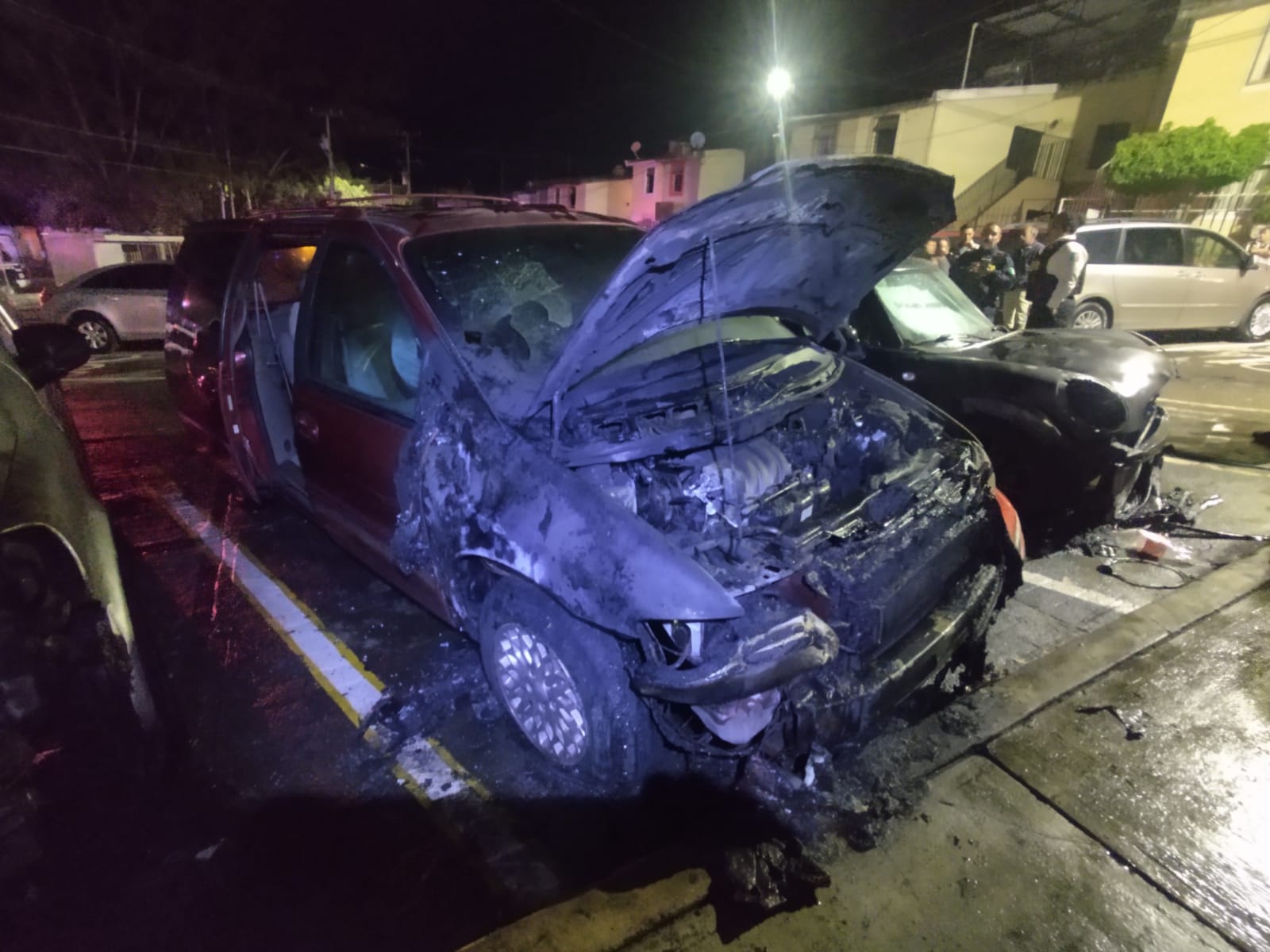 En el lugar, personal pericial pudo apreciar los siguientes vehículos siniestrados: un Mini Cooper negro, una camioneta de la marca Chrysler, tipo Town & Country, un auto Chevrolet, tipo Uplander, uno Volkswagen, tipo Jetta, un Audi y un Toyota, tipo Yaris, los cuales fueron incendiados, al parecer, de manera dolosa.