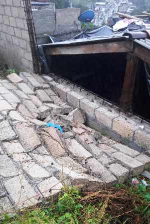 En la calle prolongación del Sabino en Palma de Cedano, los socorristas auxiliaron a una familia debido a que una barda de su hogar se vino abajo y la estructura resultó con daños por lo que sus habitantes tuvieron que buscar refugio, ante el riesgo de que el inmueble colapsara en su totalidad.