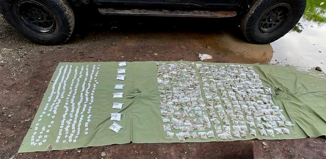 Tangancícuaro, Mich.- Durante un operativo desplegado por personal de la Secretaría de la Defensa Nacional (Defensa) y de la Guardia Nacional el municipio de Tangancícuaro, fueron aseguradas dos camionetas, una de ellas con reporte de robo y 1,750 dosis de droga.