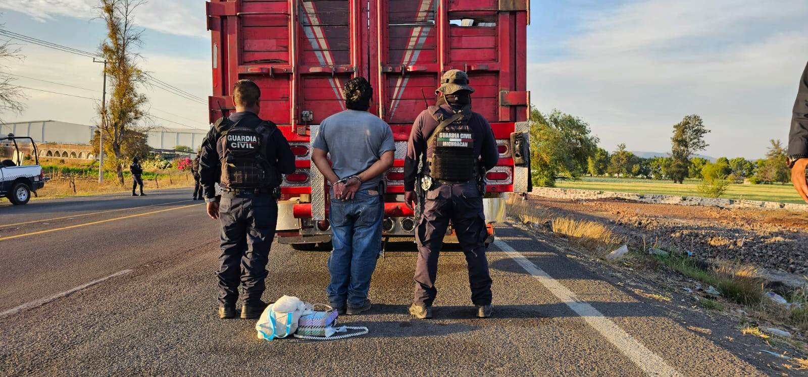 El detenido de aproximadamente 50 años de edad y el camión de la marca Internacional de color con placas de Michoacán serán puestos a disposición de las autoridades competentes donde se determinará su situación legal. RED 113 MICHOACÁN/Redacción