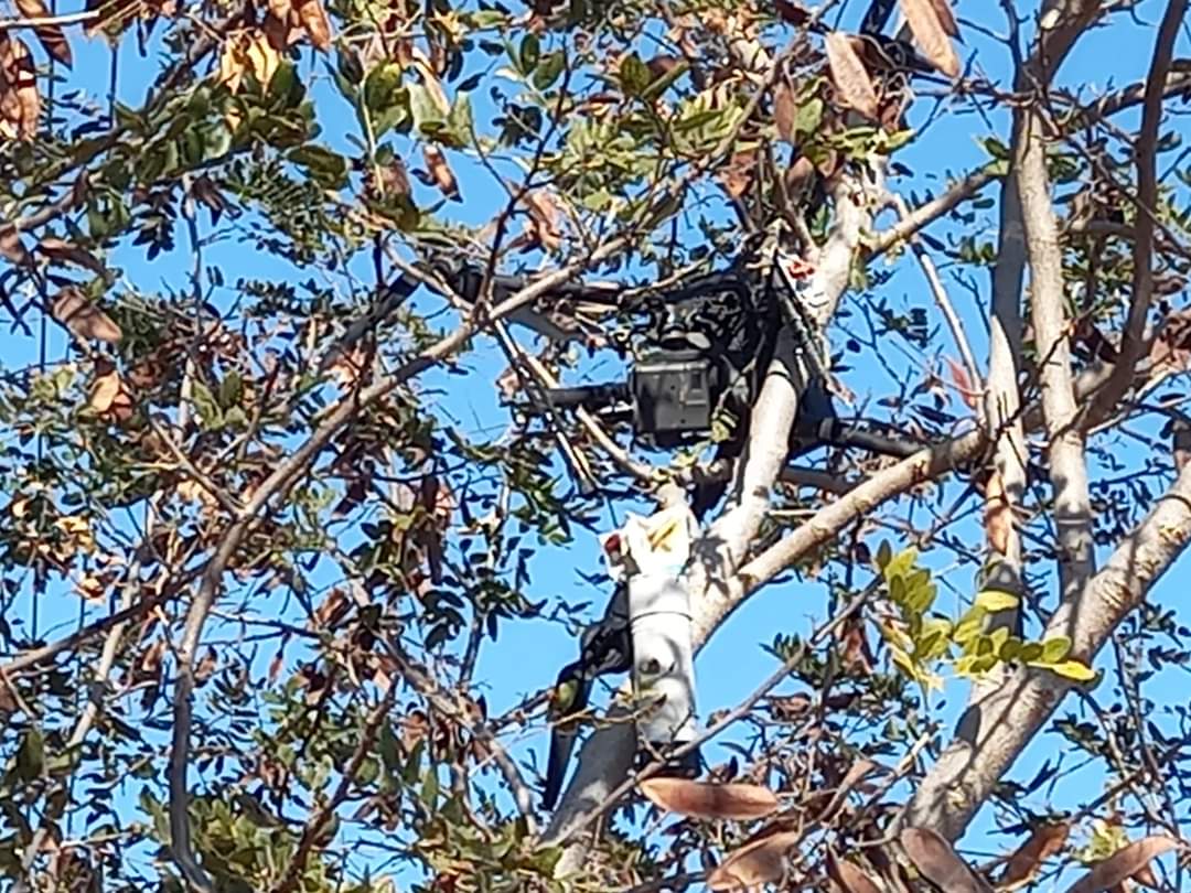 Al circular observaron en un árbol un objeto y de inmediato aseguraron la zona, al revisar confirmaron que se trata de un objeto con las características de un vehículo aéreo no tripulado, con un artefacto explosivo pegado.