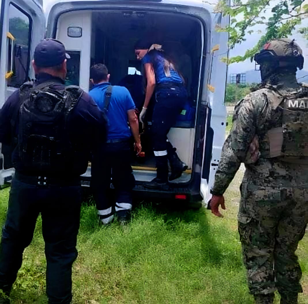 El lesionado fue estabilizado en el lugar y posteriormente trasladado en una ambulancia al nosocomio más cercano, bajo resguardo de autoridades, para recibir atención especializada.