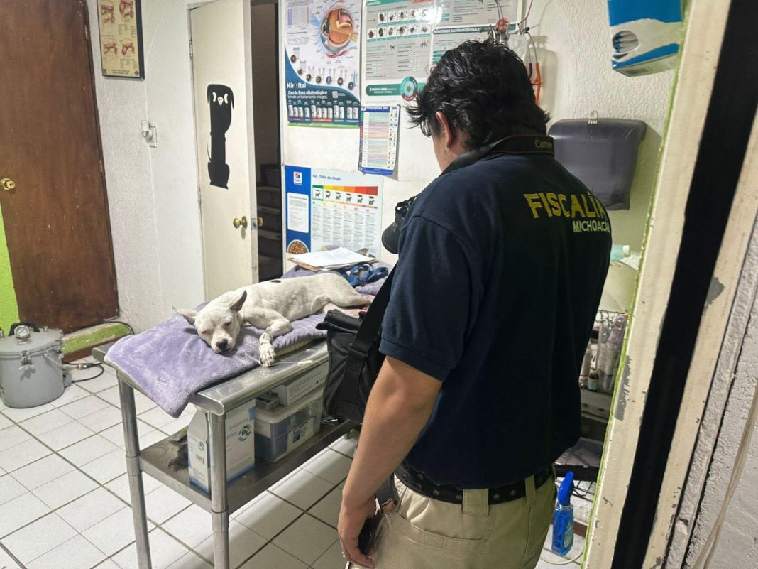 La Policía Auxiliar cubre tratamiento de perrito herido, en Morelia