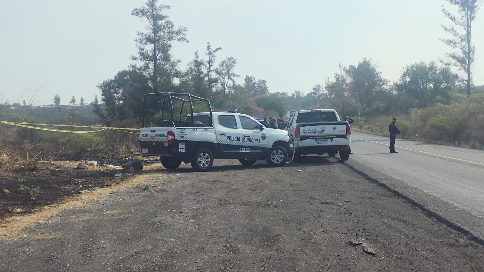 Charo, Mich.- Dos hombres muertos, atados de pies y manos, a quienes se les apreciaron heridas de proyectil de arma de fuego, fueron encontrados a la orilla del kilómetro 150 de la carretera Morelia-Maravatío, dentro del municipio de Charo, en los límites con la región de Indaparapeo.