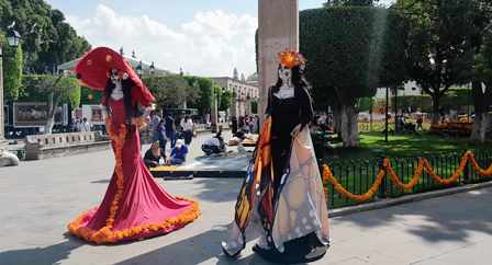 Algunas catrinas ya deambulan, elegantes como pa’ ir de boda, por el lugar.