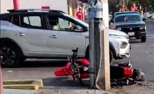 Uruapan, Mich.- Un motociclista se debate entre la vida y la muerte luego de estrellarse contra un poste de concreto sobre la avenida Lázaro Cárdenas, mejor conocida como «pista vieja», en la colonia Revolución de la ciudad de Uruapan.