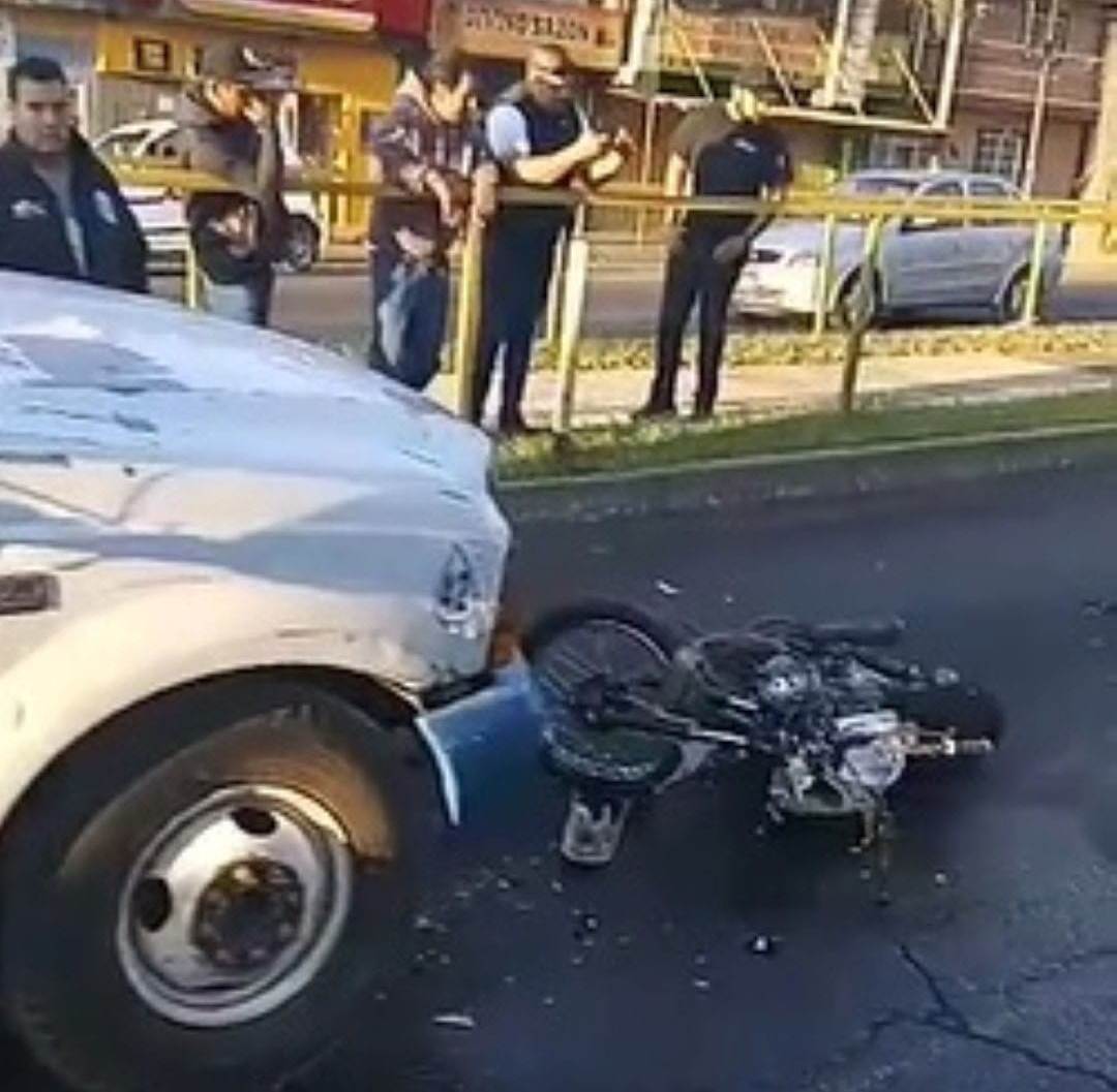 Fue a la altura del Hospital del Instituto Mexicano del Seguro Social de Uruapan, donde el ocupante una moto de color negro con blanco, habría sido impactada por una camioneta cargada con garrafones de agua.