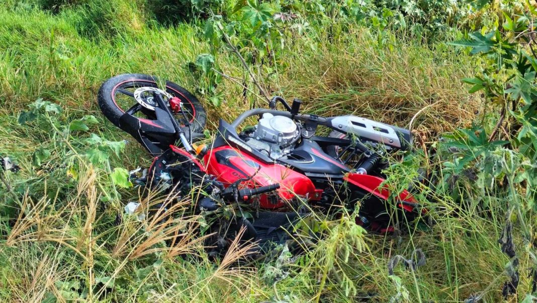 Unas personas que pasaban por el lugar vieron la moto siniestrada, la cual es de la marca Italika DT125, color rojo con negro y sin placas, luego descubrieron tirado al susodicho y avisaron al número de emergencias 911.