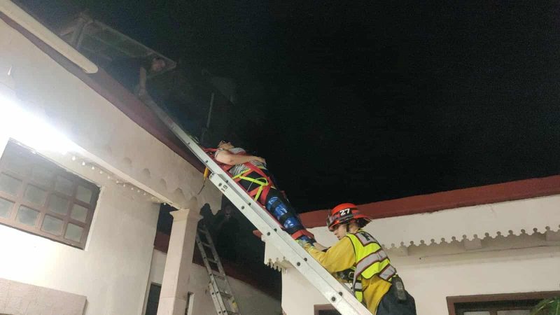 El incidente se registró la noche de ayer sábado en lo alto de un hogar localizado en la calle San Bartolomé de las Casas. Se supo que la fémina afectada responde al nombre de Sonia Maritza, de 52 años de edad, quien sufrió una probable fractura en un tobillo.