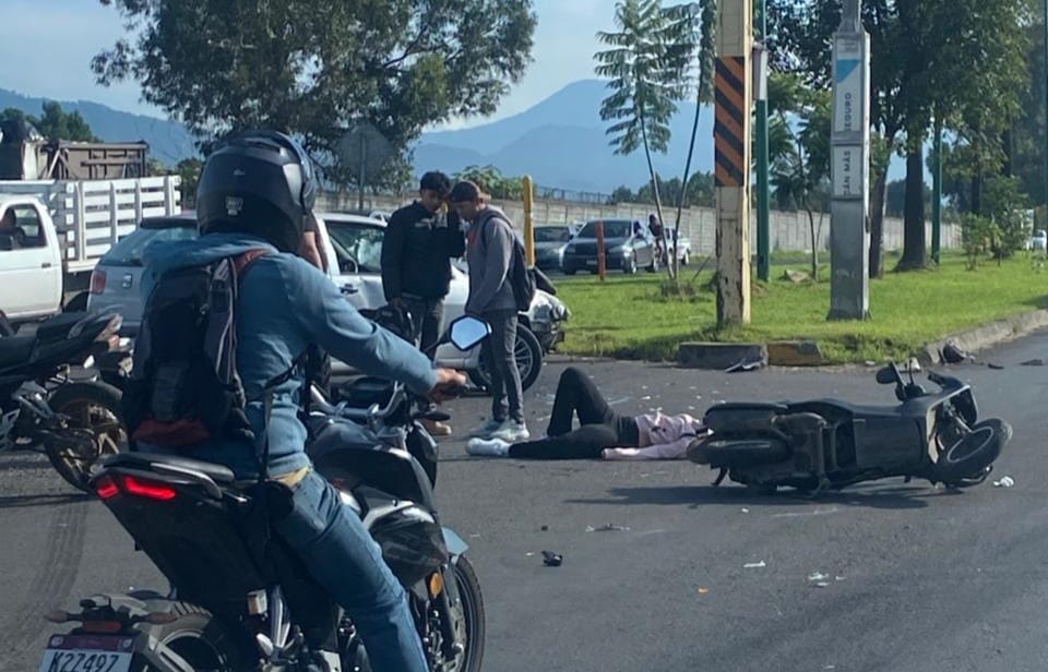 Uruapan, Mich.- Un aparatoso choque entre una motocicleta y un vehículo compacto ocurrido sobre el Libramiento Oriente de Uruapan dejó a una joven gravemente lesionada, movilizando a los cuerpos de emergencia y a las autoridades viales.