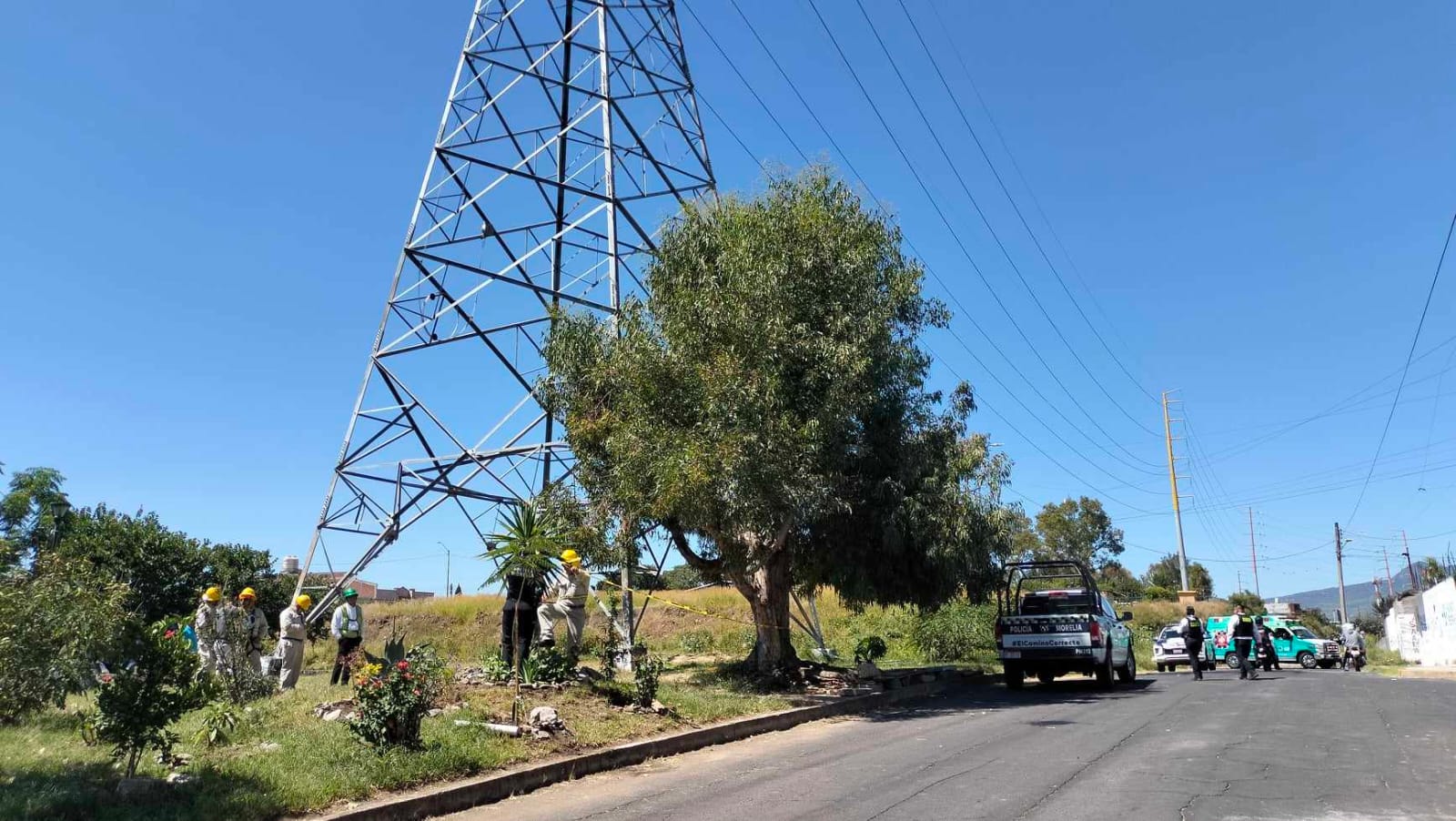 En el sitio se presentaron patrulleros municipales y estatales, así como paramédicos de Rescate y Bomberos Morelia, quienes se mantuvieron pendientes a los movimientos que hacía la ciudadana, pues se temía que pudiera saltar o hacer contacto con los cables de alta tensión.