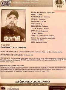 Del caso de Santiago se supo que él fue visto por última vez alrededor de las 14:40 horas del pasado viernes 25 de julio en la colonia Centro de esta cabecera municipal, desde entonces se desconoce su paradero y sus familiares temen por su integridad física.