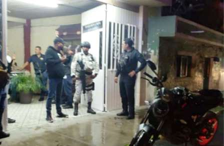 Uniformados de la Guardia Nacional, Fiscalía General del Estado y Policía Municipal se trasladaron al lugar donde localizaron daños en la fachada de la Funeraria Lara, por lo que aseguraron el lugar.