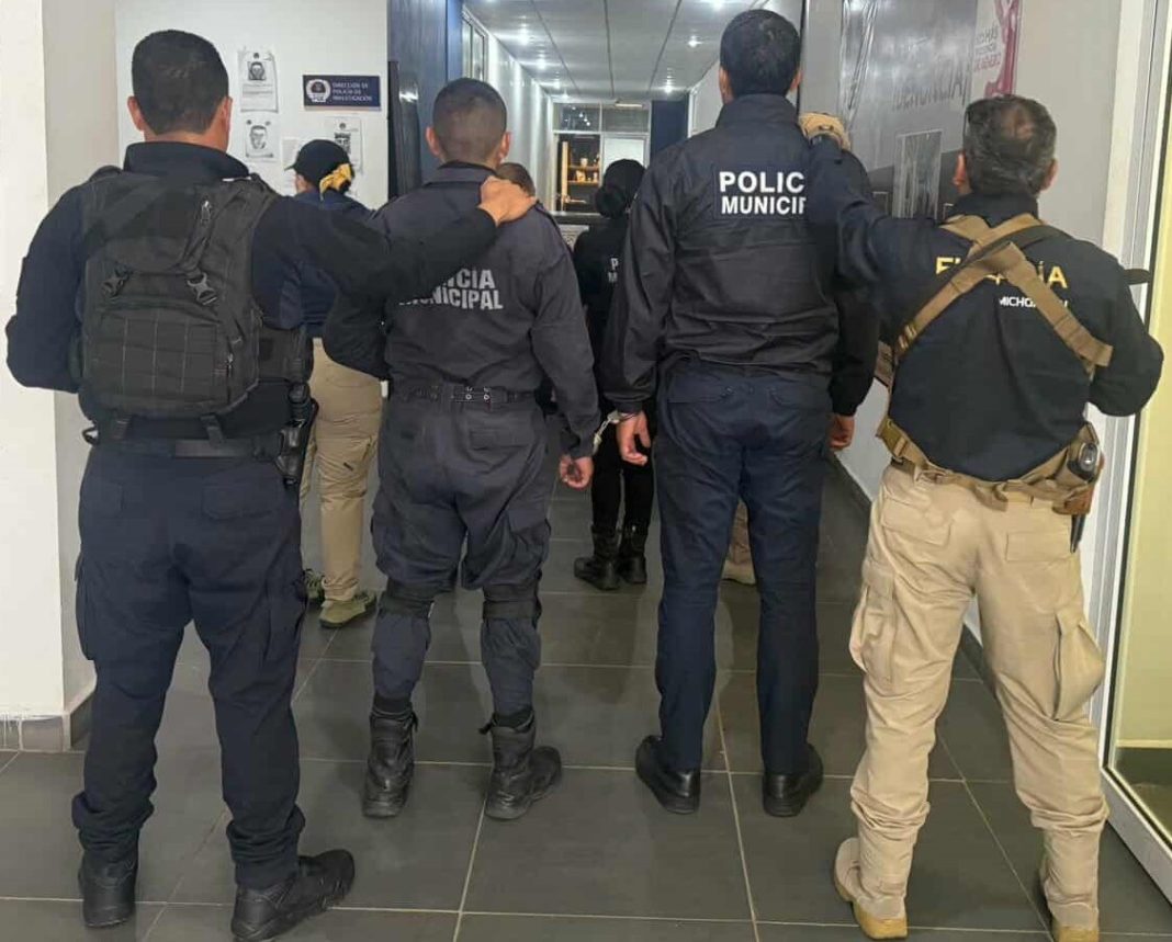 Maravatío, Mich.- Los cinco policías de Maravatío recién arrestados por la Fiscalía General del Estado (FGE) durante un operativo interinstitucional, posiblemente habrían entregado a tres hombres a un grupo armado que de manera violenta los privó de la libertad y desde entonces se desconoce el paradero de las víctimas, de acuerdo con información de la Fiscalía.