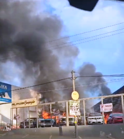 Uruapan, Mich.- La tarde de este jueves, delincuentes fuertemente armados atacaron a balazos y prendieron fuego a tres lotes de venta de vehículos en el entronque a Zumpimito, del municipio de Uruapan. De forma preliminar se reportaron tres personas heridas y al menos 10 autos quemados.