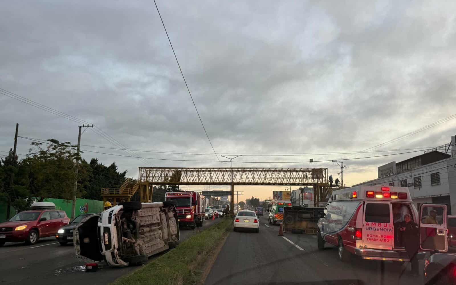 En accidente vuelcan auto y combi en la avenida Morelos Norte de Morelia