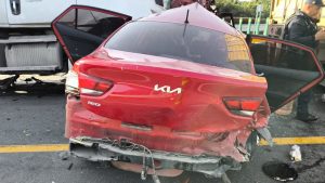 Un Kia rojo impactó por detrás al tráiler detenido, y a su vez fue embestido por otro tractocamión de la empresa Carga Súper Express, con placas 17-UY-2D. La colisión alcanzó además a una Chevrolet Tracker, una Dodge RAM y un Toyota Avanza, procedentes de distintos estados del país.