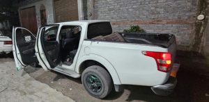 Durante recorridos en la zona el personal policial, pero en la calle Gabriel Zapata del mismo asentamiento encontró un vehículo Jeep Grand Cherokee, de color Gris, mismo que presenta blindaje de fábrica y varios impactos de proyectil de arma de fuego.