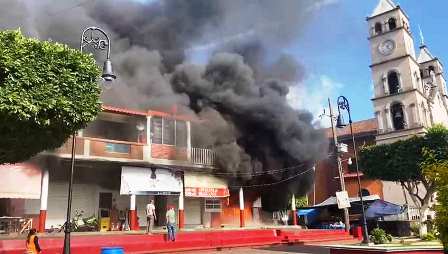 Incendio de dulcería 1807Tingambato, Mich.- Cuantiosos daños materiales dejó el incendio de una dulcería ubicada en la plaza principal, justo a un costado de la alcaldía de Tingambato. El siniestro movilizó a los cuerpos de bomberos de municipios aledaños para evitar que las llamas se extendieran.