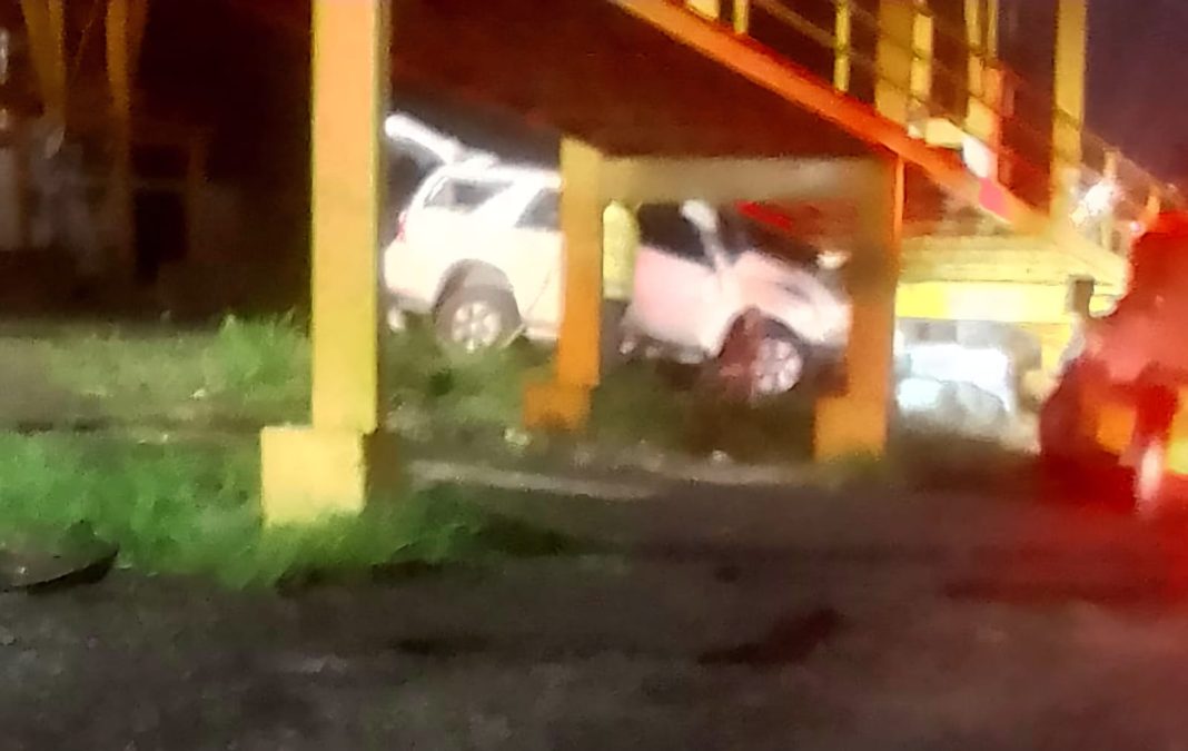 En uno de los percances una camioneta se estrelló contra la base de un puente peatonal, el otro fue una volcadura