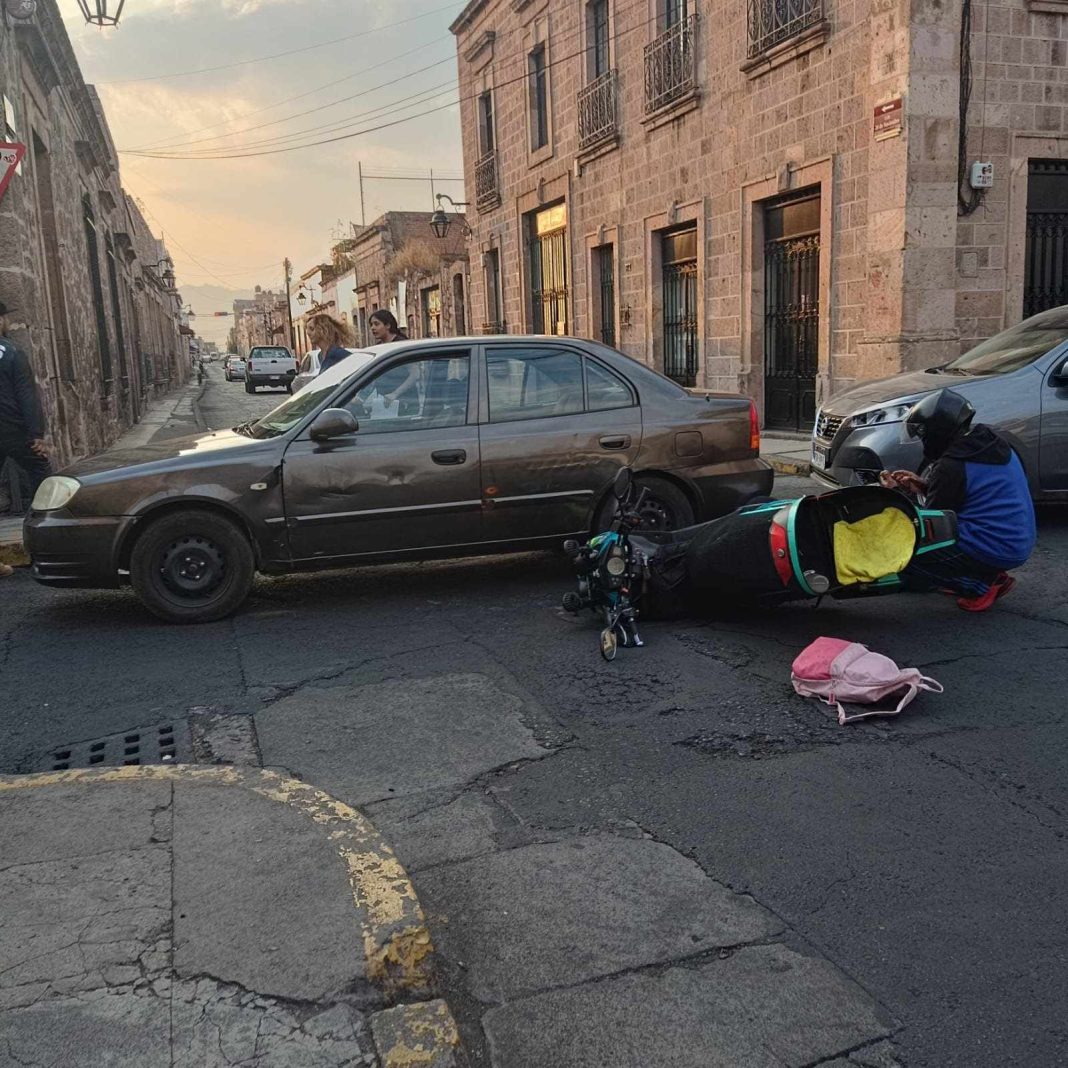 El primero sucedió en el cruce de las calles 20 de Noviembre y Serapio Rendón, en el Centro Histórico de la ciudad. Se trató del choque entre un auto y una motocicleta