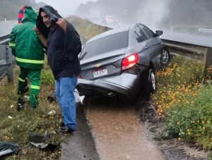 La lluviosa tarde de este viernes, la autopista Siglo XXI fue el escenario de dos accidentes vehiculares, dejando como saldo al menos una persona lesionada y cuantiosos daños materiales.