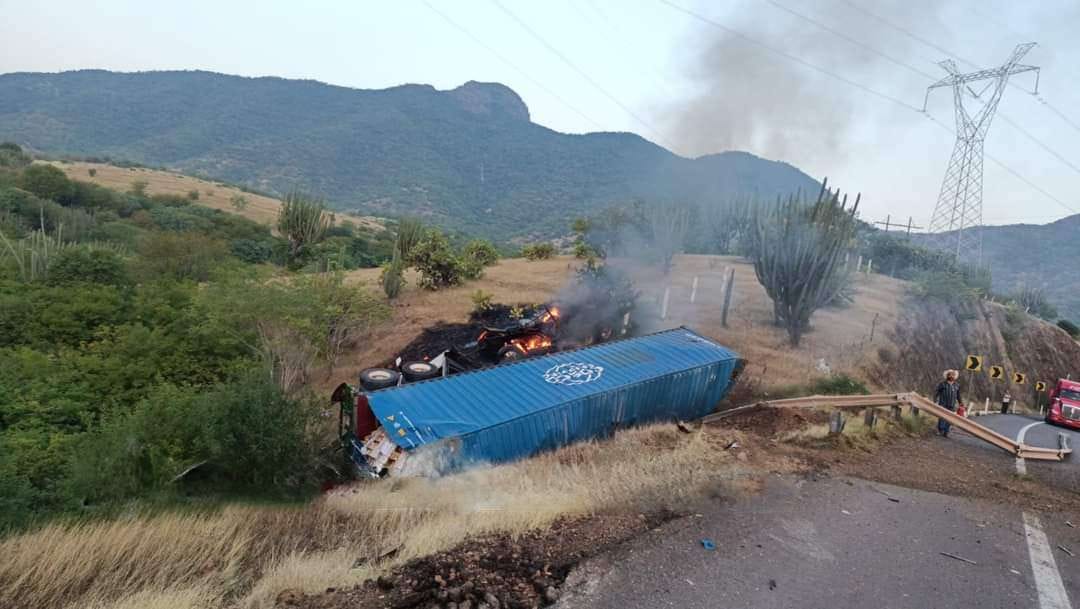 Cerca de las 07:30 horas de este martes, transportistas reportaron la colisión entre dos tráileres a la altura del kilómetro 185, en las cercanías de la población de San Pedro Barajas, donde al una de las unidades involucradas comenzó a incendiarse y la otra se precipitó a un desnivel por fuera de la carpeta asfáltica.