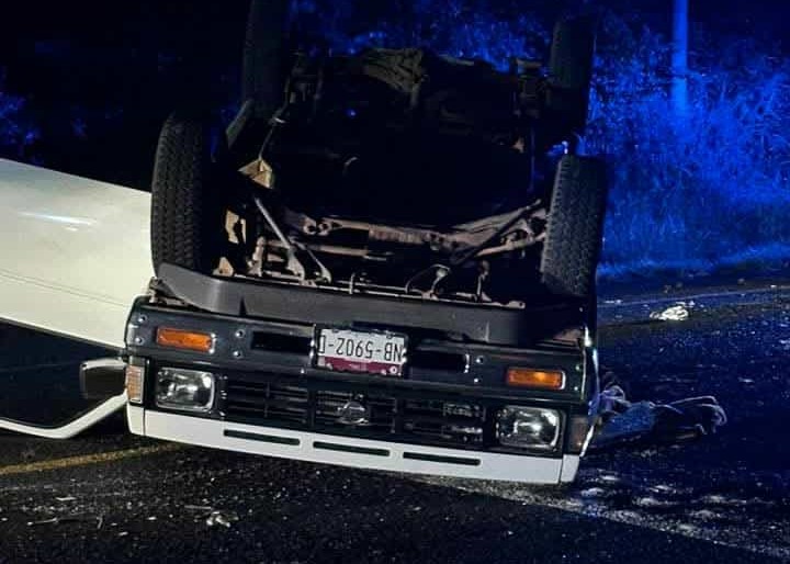 Los servicios de emergencia recibieron el reporte de un vehículo volcado que obstruía ambos carriles de la vía. Al llegar al sitio, los elementos de los Bomberos Voluntarios de Múgica localizaron una camioneta Nissan blanca, con placas NB-5902-D, recostada sobre el asfalto y con severos daños.
