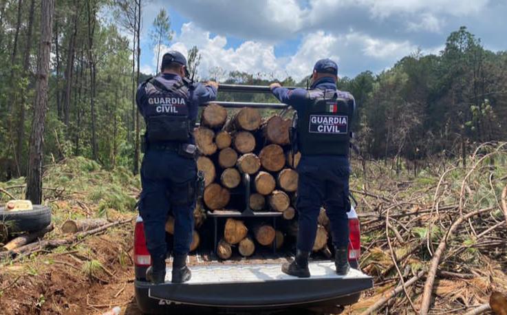 En el sitio encontraron varias unidades de la materia prima derribadas sin marcas que acreditaran su legal tala, por lo que procedieron a asegurar los troncos de madera para trasladarlos ante la autoridad encargada a fin de realizar las diligencias pertinentes.