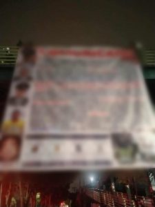 De nueva cuenta sujetos desconocidos colocaron narcolonas en puentes peatonales ubicados en diferentes puntos de la capital michoacana. El texto impreso en dichos materiales no fue revelado por la Policía, pero se supo que son señalamientos contra mandos militares, funcionarios y células criminales que operan en Tierra Caliente.