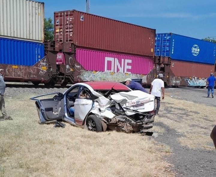 Gabriel Zamora, Mich.- Un taxista intentó ganarle el paso al ferrocarril en la carretera libre Nueva Italia – Lombardía y fue embestido por la pesada máquina de hierro, con saldo de un lesionado.