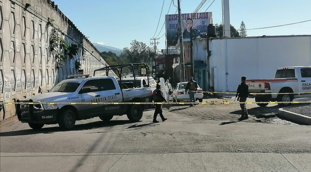 Uruapan, Mich.- La mañana de este viernes, delincuentes armados interceptaron un taxi de la línea Vicente Guerrero y acribillaron a tiros al ruletero, así como a su pasajero, en el Boulevard Industrial y Libramiento, frente a la papelera de Uruapan.