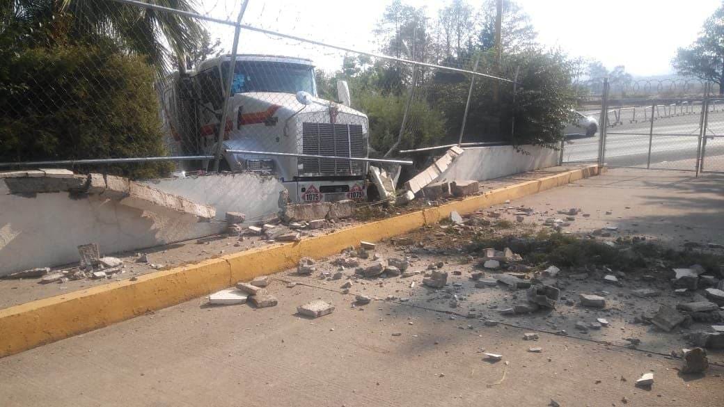 Zinapécuaro, Mich.- Un tractocamión, el cual aparentemente se quedó sin frenos, se estrelló contra una barda perimetral ubicada en la caseta de cobro de Zinapécuaro, trascendió en la labor noticiosa.
