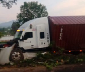 Primeramente, en el kilómetro 18+300 del tramo Morelia – Tiripetío, en las inmediaciones de la comunidad de “El Reparo”, un tráiler de cabina blanca con número económico 380 y remolques de color guinda terminó siniestrado al salirse de la carpeta asfáltica, sin que se reportaran víctimas.