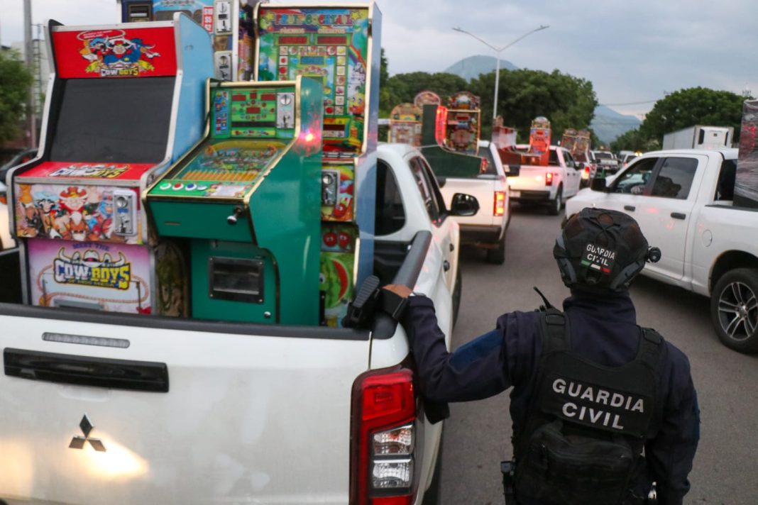 “En los inmuebles supervisados se localizaron 163 máquinas (tragamonedas) que eran instaladas bajo presión por presuntos integrantes de células delincuenciales relacionados en el delito de extorsión”.