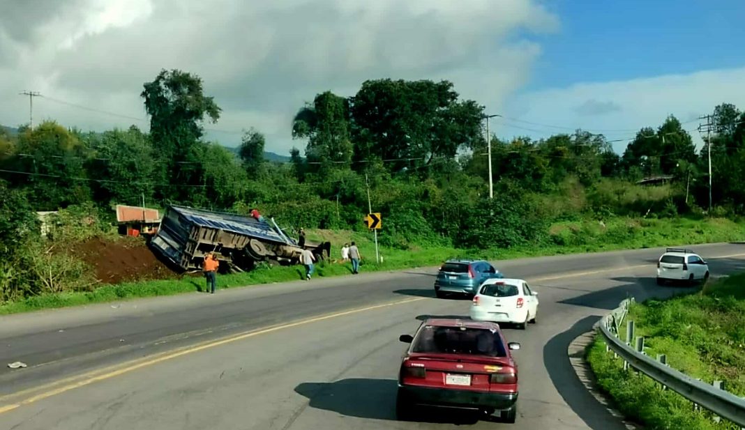 Se conoció que el camión Torton de color azul circulaba con rumbo a esta ciudad de Uruapan cuando el conductor al parecer perdió el control al llegar a dicha curva e invadió el carril contrario para impactar contra una camioneta color gris.