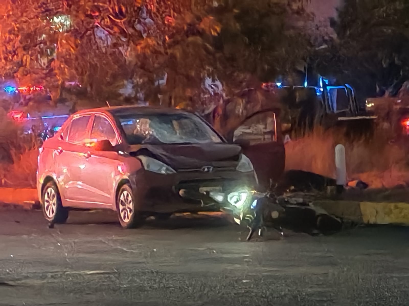 El accidente se registró la noche de este domingo, a la altura del retorno ubicado en las inmediaciones de la salida a Cointzio, donde quedó con el parabrisas estrellado y con un fuerte golpe en el cofre, un vehículo Hyundai de color rojo y a unos metros un motociclo de color negro.